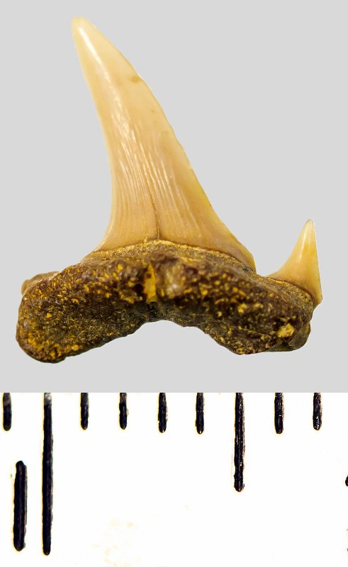 Зуб. Акула. Eostriatolamia subulata (Agassiz, 1843). Классификация: Хордовые Chordata, Позвоночные Vertebrata, Хрящевые рыбы Chondrichthyes, Пластиножаберные Elasmobranchii, Акулы Selachii, Ламнообразные Lamniformes, Песчаные акулы Odontaspididae