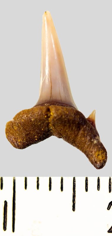 Зуб. Акула. Eostriatolamia subulata (Agassiz, 1843). Классификация: Хордовые Chordata, Позвоночные Vertebrata, Хрящевые рыбы Chondrichthyes, Пластиножаберные Elasmobranchii, Акулы Selachii, Ламнообразные Lamniformes, Песчаные акулы Odontaspididae