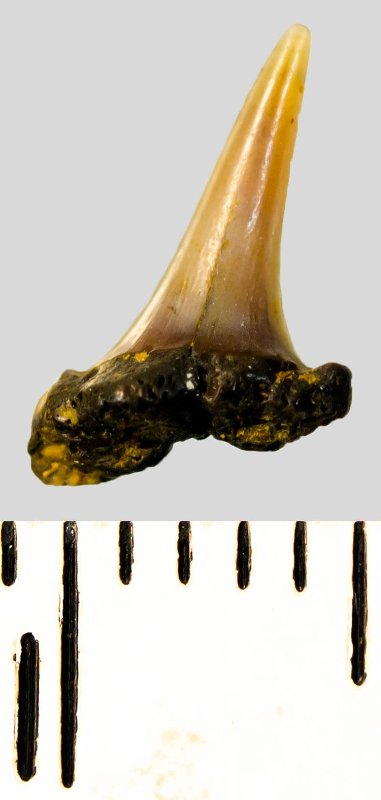 Зуб. Акула. Eostriatolamia subulata (Agassiz, 1843). Классификация: Хордовые Chordata, Позвоночные Vertebrata, Хрящевые рыбы Chondrichthyes, Пластиножаберные Elasmobranchii, Акулы Selachii, Ламнообразные Lamniformes, Песчаные акулы Odontaspididae