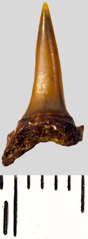 Зуб. Акула. Eostriatolamia subulata (Agassiz, 1843). Классификация: Хордовые Chordata, Позвоночные Vertebrata, Хрящевые рыбы Chondrichthyes, Пластиножаберные Elasmobranchii, Акулы Selachii, Ламнообразные Lamniformes, Песчаные акулы Odontaspididae