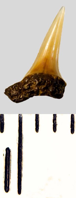 Зуб. Акула. Eostriatolamia subulata (Agassiz, 1843). Классификация: Хордовые Chordata, Позвоночные Vertebrata, Хрящевые рыбы Chondrichthyes, Пластиножаберные Elasmobranchii, Акулы Selachii, Ламнообразные Lamniformes, Песчаные акулы Odontaspididae
