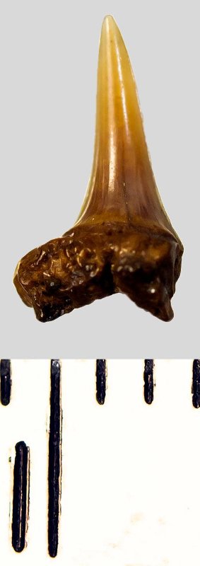 Зуб. Акула. Eostriatolamia subulata (Agassiz, 1843). Классификация: Хордовые Chordata, Позвоночные Vertebrata, Хрящевые рыбы Chondrichthyes, Пластиножаберные Elasmobranchii, Акулы Selachii, Ламнообразные Lamniformes, Песчаные акулы Odontaspididae