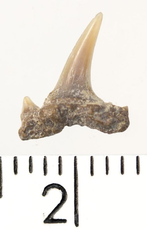 Зуб. Акула. Eostriatolamia subulata (Agassiz, 1843). Классификация: Хордовые Chordata, Позвоночные Vertebrata, Хрящевые рыбы Chondrichthyes, Пластиножаберные Elasmobranchii, Акулы Selachii, Ламнообразные Lamniformes, Песчаные акулы Odontaspididae