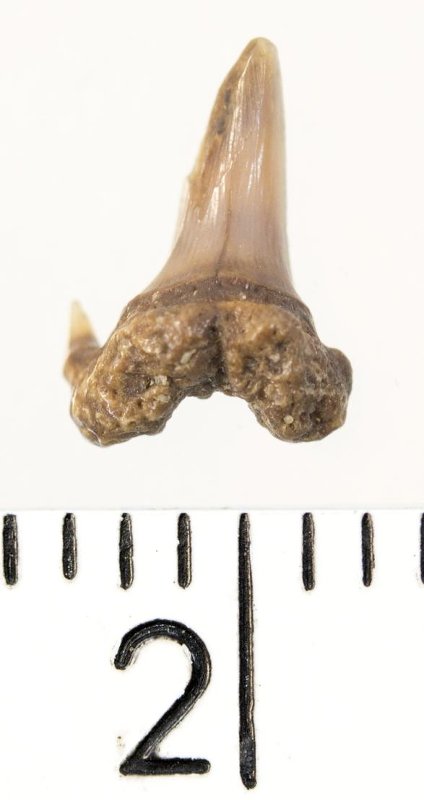 Зуб. Акула. Eostriatolamia subulata (Agassiz, 1843). Классификация: Хордовые Chordata, Позвоночные Vertebrata, Хрящевые рыбы Chondrichthyes, Пластиножаберные Elasmobranchii, Акулы Selachii, Ламнообразные Lamniformes, Песчаные акулы Odontaspididae