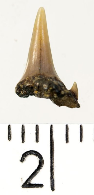 Зуб. Акула. Eostriatolamia subulata (Agassiz, 1843). Классификация: Хордовые Chordata, Позвоночные Vertebrata, Хрящевые рыбы Chondrichthyes, Пластиножаберные Elasmobranchii, Акулы Selachii, Ламнообразные Lamniformes, Песчаные акулы Odontaspididae