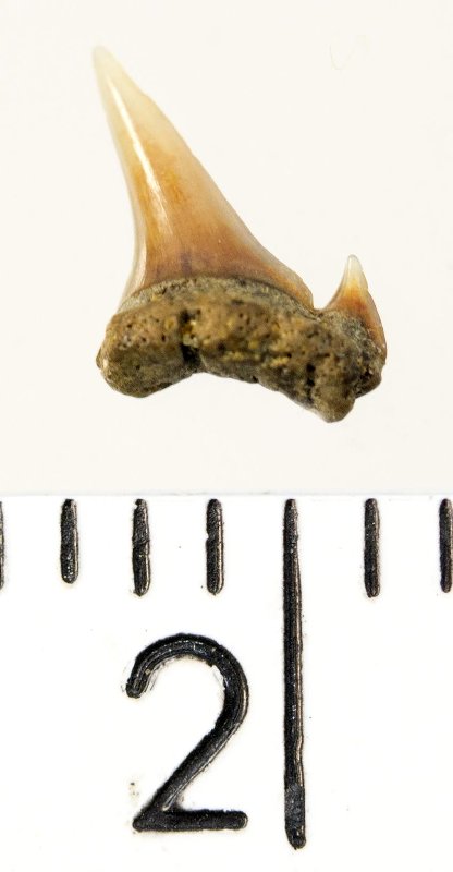Зуб. Акула. Eostriatolamia subulata (Agassiz, 1843). Классификация: Хордовые Chordata, Позвоночные Vertebrata, Хрящевые рыбы Chondrichthyes, Пластиножаберные Elasmobranchii, Акулы Selachii, Ламнообразные Lamniformes, Песчаные акулы Odontaspididae