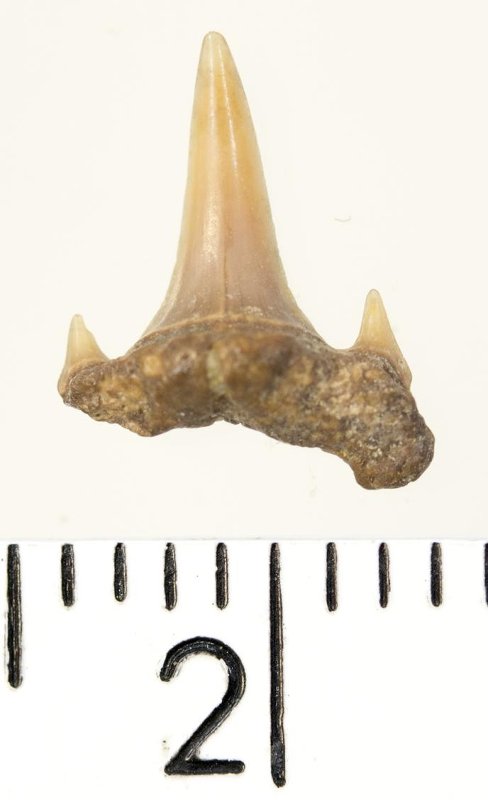 Зуб. Акула. Eostriatolamia subulata (Agassiz, 1843). Классификация: Хордовые Chordata, Позвоночные Vertebrata, Хрящевые рыбы Chondrichthyes, Пластиножаберные Elasmobranchii, Акулы Selachii, Ламнообразные Lamniformes, Песчаные акулы Odontaspididae
