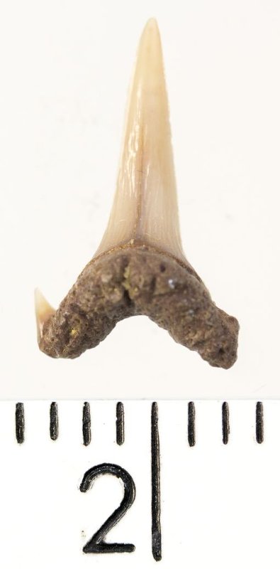 Зуб. Акула. Eostriatolamia subulata (Agassiz, 1843). Классификация: Хордовые Chordata, Позвоночные Vertebrata, Хрящевые рыбы Chondrichthyes, Пластиножаберные Elasmobranchii, Акулы Selachii, Ламнообразные Lamniformes, Песчаные акулы Odontaspididae