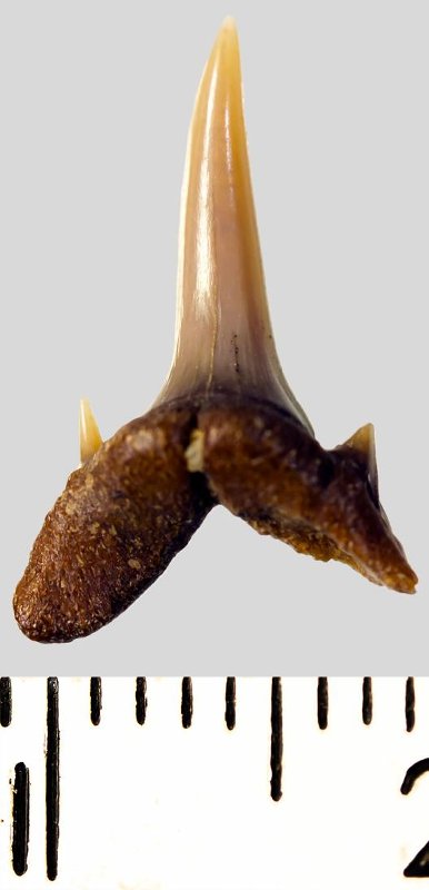 Зуб. Акула. Eostriatolamia subulata (Agassiz, 1843). Классификация: Хордовые Chordata, Позвоночные Vertebrata, Хрящевые рыбы Chondrichthyes, Пластиножаберные Elasmobranchii, Акулы Selachii, Ламнообразные Lamniformes, Песчаные акулы Odontaspididae