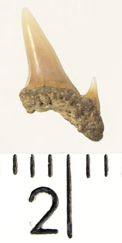 Зуб. Акула. Eostriatolamia subulata (Agassiz, 1843). Классификация: Хордовые Chordata, Позвоночные Vertebrata, Хрящевые рыбы Chondrichthyes, Пластиножаберные Elasmobranchii, Акулы Selachii, Ламнообразные Lamniformes, Песчаные акулы Odontaspididae