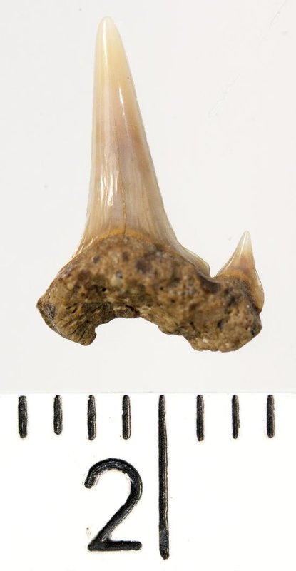 Зуб. Акула. Eostriatolamia subulata (Agassiz, 1843). Классификация: Хордовые Chordata, Позвоночные Vertebrata, Хрящевые рыбы Chondrichthyes, Пластиножаберные Elasmobranchii, Акулы Selachii, Ламнообразные Lamniformes, Песчаные акулы Odontaspididae