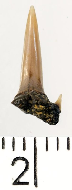 Зуб. Акула. Eostriatolamia subulata (Agassiz, 1843). Классификация: Хордовые Chordata, Позвоночные Vertebrata, Хрящевые рыбы Chondrichthyes, Пластиножаберные Elasmobranchii, Акулы Selachii, Ламнообразные Lamniformes, Песчаные акулы Odontaspididae