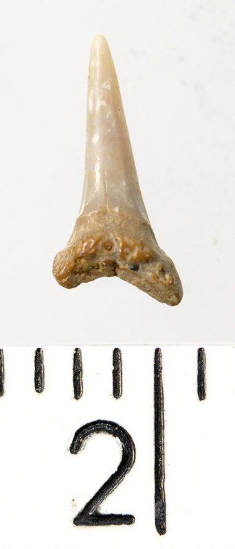 Зуб. Акула. Eostriatolamia subulata (Agassiz, 1843). Классификация: Хордовые Chordata, Позвоночные Vertebrata, Хрящевые рыбы Chondrichthyes, Пластиножаберные Elasmobranchii, Акулы Selachii, Ламнообразные Lamniformes, Песчаные акулы Odontaspididae
