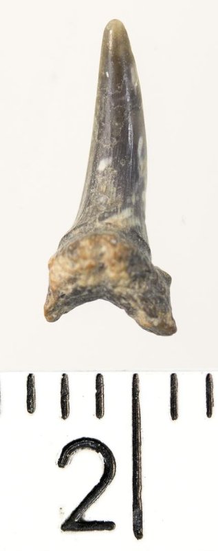Зуб. Акула. Eostriatolamia subulata (Agassiz, 1843). Классификация: Хордовые Chordata, Позвоночные Vertebrata, Хрящевые рыбы Chondrichthyes, Пластиножаберные Elasmobranchii, Акулы Selachii, Ламнообразные Lamniformes, Песчаные акулы Odontaspididae