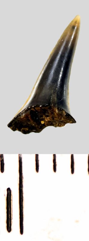 Зуб (фрагмент). Акула. Eostriatolamia subulata (Agassiz, 1843). Классификация: Хордовые Chordata, Позвоночные Vertebrata, Хрящевые рыбы Chondrichthyes, Пластиножаберные Elasmobranchii, Акулы Selachii, Ламнообразные Lamniformes, Песчаные акулы Odontaspididae