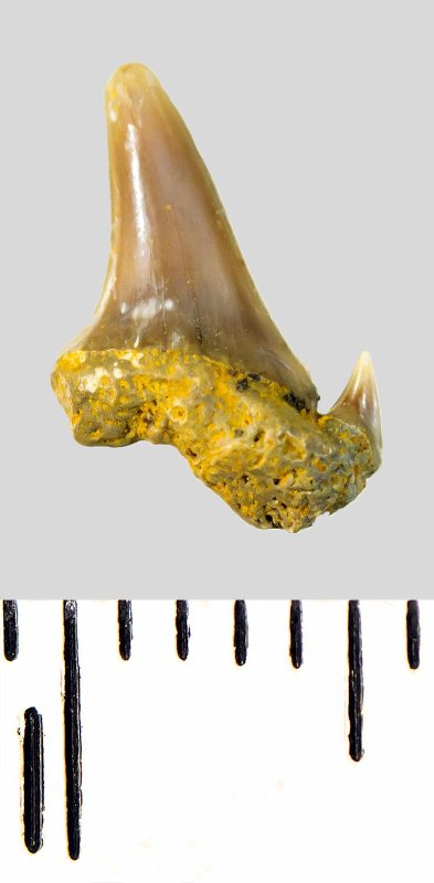 Зуб. Акула. Eostriatolamia subulata (Agassiz, 1843). Классификация: Хордовые Chordata, Позвоночные Vertebrata, Хрящевые рыбы Chondrichthyes, Пластиножаберные Elasmobranchii, Акулы Selachii, Ламнообразные Lamniformes, Песчаные акулы Odontaspididae
