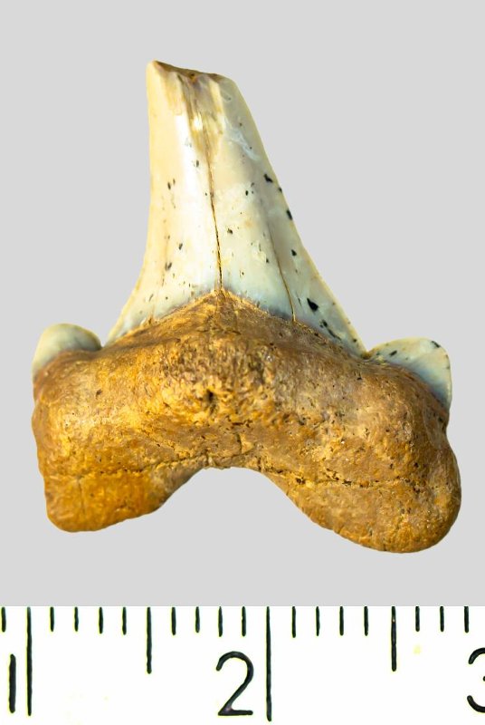 Зуб. Акула. Cretoxyrhina denticulata (Gluckman, 1957). Классификация: Хордовые Chordata, Позвоночные Vertebrata, Хрящевые рыбы Chondrichthyes, Пластиножаберные Elasmobranchii, Акулы Selachii, Ламнообразные Lamniformes, Cretoxyrhinidae
