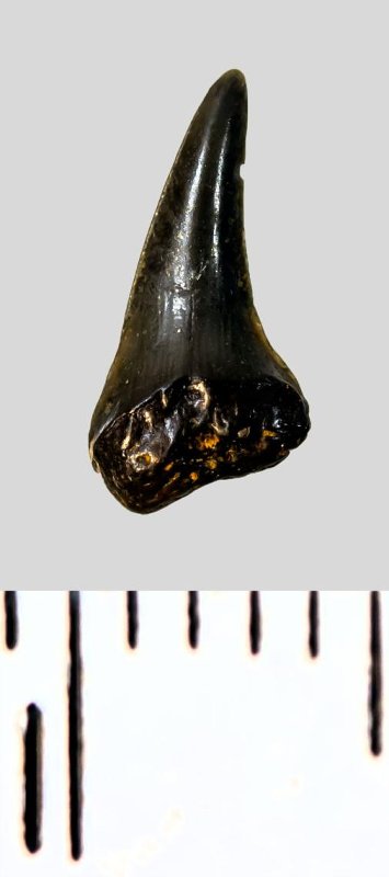 Зуб (фрагмент). Акула. Eostriatolamia subulata (Agassiz, 1843). Классификация: Хордовые Chordata, Позвоночные Vertebrata, Хрящевые рыбы Chondrichthyes, Пластиножаберные Elasmobranchii, Акулы Selachii, Ламнообразные Lamniformes, Песчаные акулы Odontaspididae