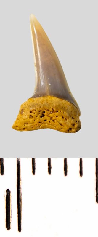 Зуб (фрагмент). Акула. Eostriatolamia subulata (Agassiz, 1843). Классификация: Хордовые Chordata, Позвоночные Vertebrata, Хрящевые рыбы Chondrichthyes, Пластиножаберные Elasmobranchii, Акулы Selachii, Ламнообразные Lamniformes, Песчаные акулы Odontaspididae