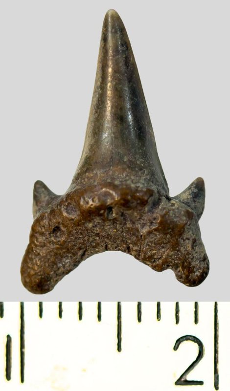 Зуб. Акула. Archaeolamna cf. kopingensis (Davis, 1890). Классификация: Хордовые Chordata, Позвоночные Vertebrata, Хрящевые рыбы Chondrichthyes, Пластиножаберные Elasmobranchii, Акулы Selachii, Ламнообразные Lamniformes, Cretoxyrhinidae