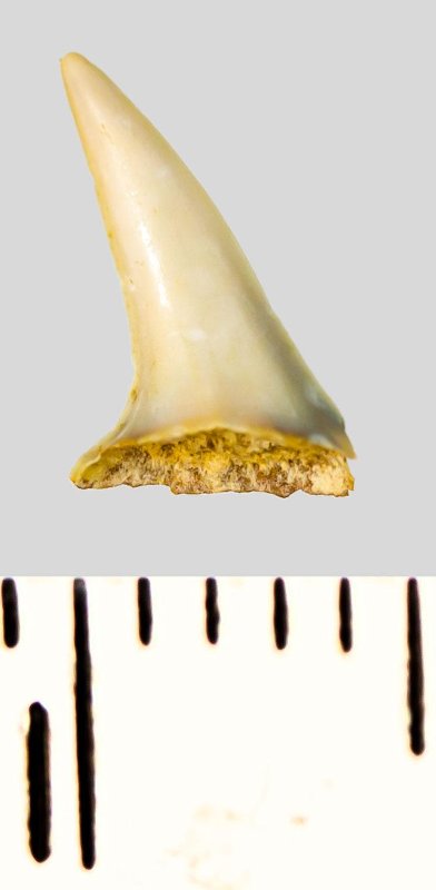 Зуб (фрагмент). Акула. Eostriatolamia subulata (Agassiz, 1843). Классификация: Хордовые Chordata, Позвоночные Vertebrata, Хрящевые рыбы Chondrichthyes, Пластиножаберные Elasmobranchii, Акулы Selachii, Ламнообразные Lamniformes, Песчаные акулы Odontaspididae