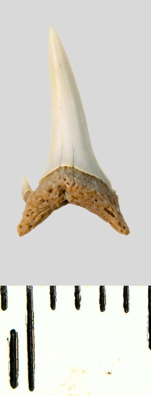 Зуб. Акула. Odontaspis striatula Dalinkevicius, 1935. Классификация: Хордовые Chordata, Позвоночные Vertebrata, Хрящевые рыбы Chondrichthyes, Пластиножаберные Elasmobranchii, Акулы Selachii, Ламнообразные Lamniformes, Песчаные акулы Odontaspididae