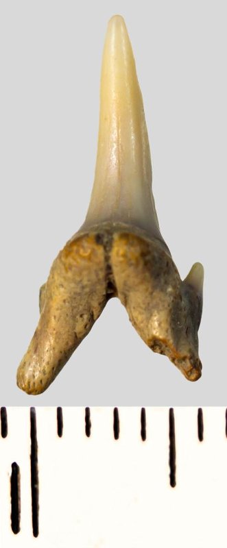 Зуб. Акула. Eostriatolamia subulata (Agassiz, 1843). Классификация: Хордовые Chordata, Позвоночные Vertebrata, Хрящевые рыбы Chondrichthyes, Пластиножаберные Elasmobranchii, Акулы Selachii, Ламнообразные Lamniformes, Песчаные акулы Odontaspididae