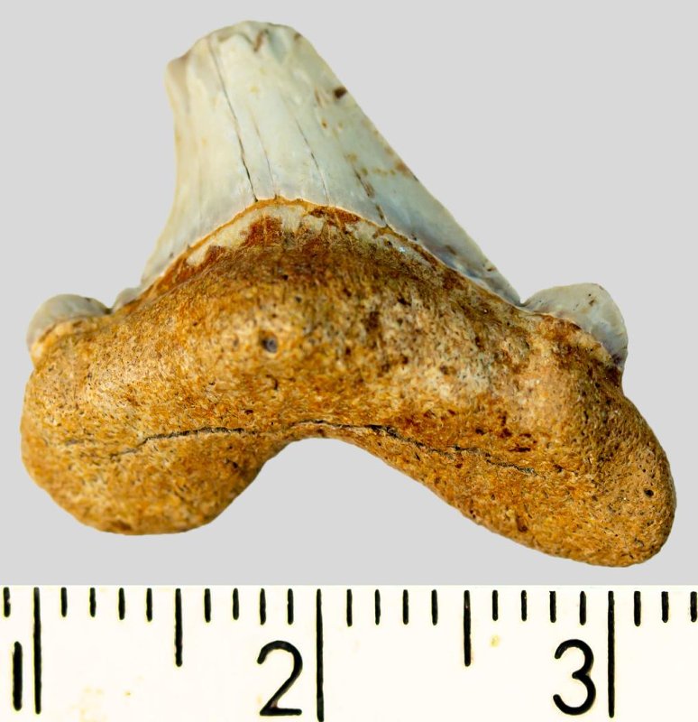 Зуб. Акула. Cretoxyrhina denticulata (Glickman, 1957). Классификация: Хордовые Chordata, Позвоночные Vertebrata, Хрящевые рыбы Chondrichthyes, Пластиножаберные Elasmobranchii, Акулы Selachii, Ламнообразные Lamniformes, Cretoxyrhinidae