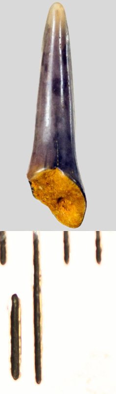 Зуб. Акула. Eostriatolamia subulata (Agassiz, 1843). Классификация: Хордовые Chordata, Позвоночные Vertebrata, Хрящевые рыбы Chondrichthyes, Пластиножаберные Elasmobranchii, Акулы Selachii, Ламнообразные Lamniformes, Песчаные акулы Odontaspididae