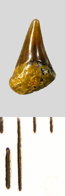 Зуб. Акула. Eostriatolamia subulata (Agassiz, 1843). Классификация: Хордовые Chordata, Позвоночные Vertebrata, Хрящевые рыбы Chondrichthyes, Пластиножаберные Elasmobranchii, Акулы Selachii, Ламнообразные Lamniformes, Песчаные акулы Odontaspididae