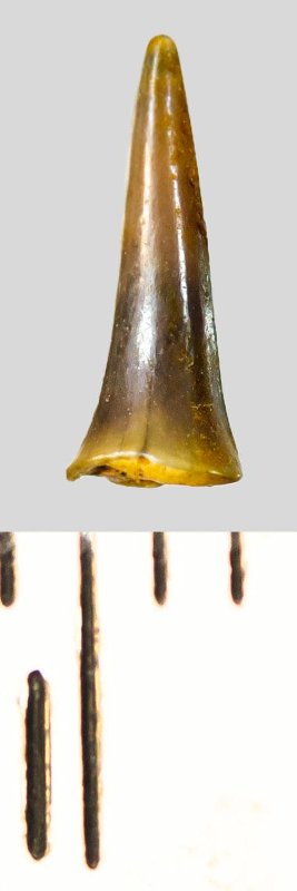 Зуб. Акула. Eostriatolamia subulata (Agassiz, 1843). Классификация: Хордовые Chordata, Позвоночные Vertebrata, Хрящевые рыбы Chondrichthyes, Пластиножаберные Elasmobranchii, Акулы Selachii, Ламнообразные Lamniformes, Песчаные акулы Odontaspididae