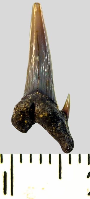 Зуб. Акула. Scapanorhynchus subulata Agassiz, 1843. Классификация: Хордовые Chordata, Позвоночные Vertebrata, Хрящевые рыбы Chondrichthyes, Пластиножаберные Elasmobranchii, Акулы Selachii, Ламнообразные Lamniformes, Песчаные акулы Odontaspididae