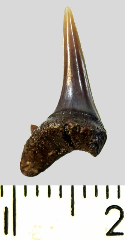 Зуб. Акула. Scapanorhynchus subulata Agassiz, 1843. Классификация: Хордовые Chordata, Позвоночные Vertebrata, Хрящевые рыбы Chondrichthyes, Пластиножаберные Elasmobranchii, Акулы Selachii, Ламнообразные Lamniformes, Песчаные акулы Odontaspididae