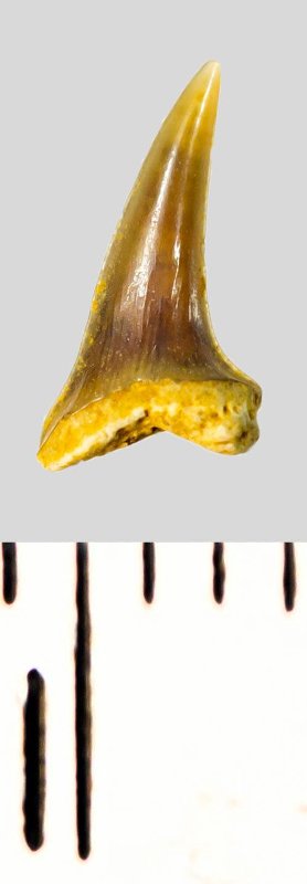 Зуб. Акула. Eostriatolamia subulata (Agassiz, 1843). Классификация: Хордовые Chordata, Позвоночные Vertebrata, Хрящевые рыбы Chondrichthyes, Пластиножаберные Elasmobranchii, Акулы Selachii, Ламнообразные Lamniformes, Песчаные акулы Odontaspididae