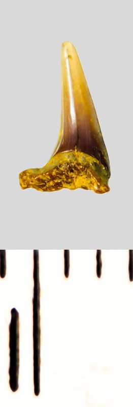 Зуб. Акула. Eostriatolamia subulata (Agassiz, 1843). Классификация: Хордовые Chordata, Позвоночные Vertebrata, Хрящевые рыбы Chondrichthyes, Пластиножаберные Elasmobranchii, Акулы Selachii, Ламнообразные Lamniformes, Песчаные акулы Odontaspididae