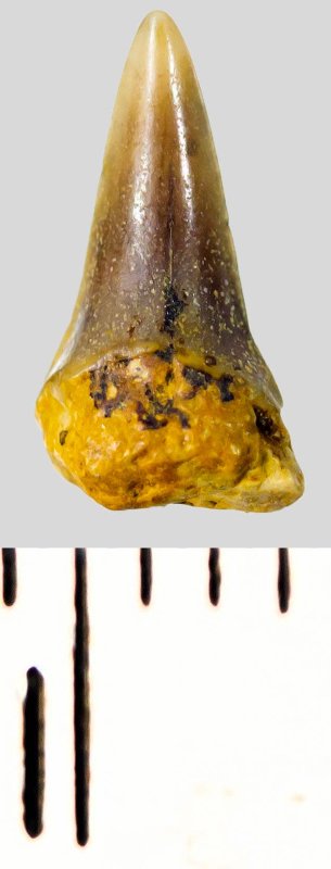 Зуб. Акула. Eostriatolamia subulata (Agassiz, 1843). Классификация: Хордовые Chordata, Позвоночные Vertebrata, Хрящевые рыбы Chondrichthyes, Пластиножаберные Elasmobranchii, Акулы Selachii, Ламнообразные Lamniformes, Песчаные акулы Odontaspididae