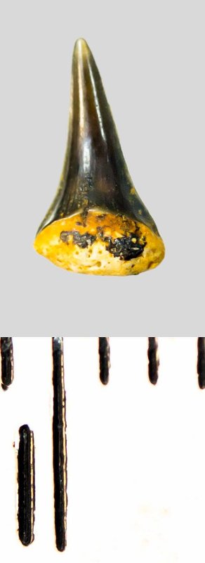 Зуб. Акула. Eostriatolamia subulata (Agassiz, 1843). Классификация: Хордовые Chordata, Позвоночные Vertebrata, Хрящевые рыбы Chondrichthyes, Пластиножаберные Elasmobranchii, Акулы Selachii, Ламнообразные Lamniformes, Песчаные акулы Odontaspididae