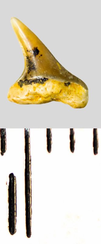 Зуб. Акула. Eostriatolamia subulata (Agassiz, 1843). Классификация: Хордовые Chordata, Позвоночные Vertebrata, Хрящевые рыбы Chondrichthyes, Пластиножаберные Elasmobranchii, Акулы Selachii, Ламнообразные Lamniformes, Песчаные акулы Odontaspididae