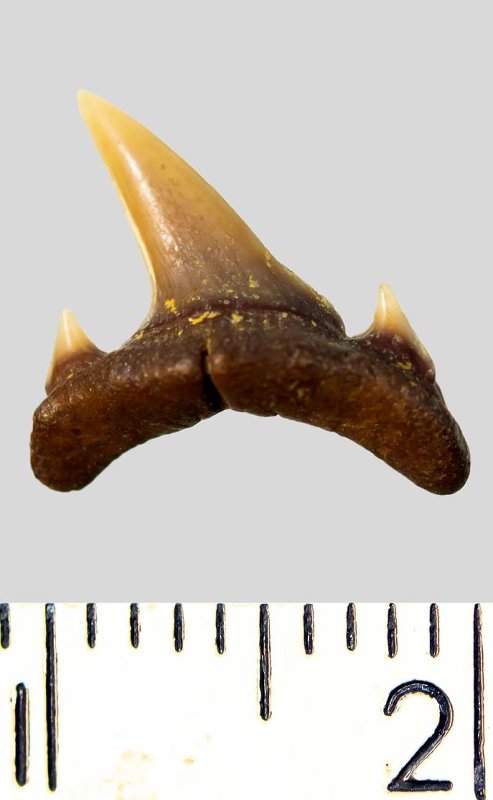 Зуб. Акула. Scapanorhynchus subulata Agassiz, 1843. Классификация: Хордовые Chordata, Позвоночные Vertebrata, Хрящевые рыбы Chondrichthyes, Пластиножаберные Elasmobranchii, Акулы Selachii, Ламнообразные Lamniformes, Песчаные акулы Odontaspididae