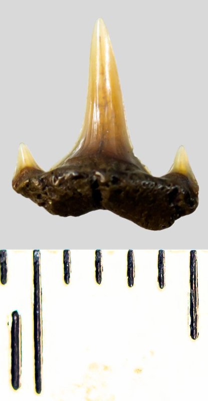 Зуб. Акула. Scapanorhynchus subulata Agassiz, 1843. Классификация: Хордовые Chordata, Позвоночные Vertebrata, Хрящевые рыбы Chondrichthyes, Пластиножаберные Elasmobranchii, Акулы Selachii, Ламнообразные Lamniformes, Песчаные акулы Odontaspididae