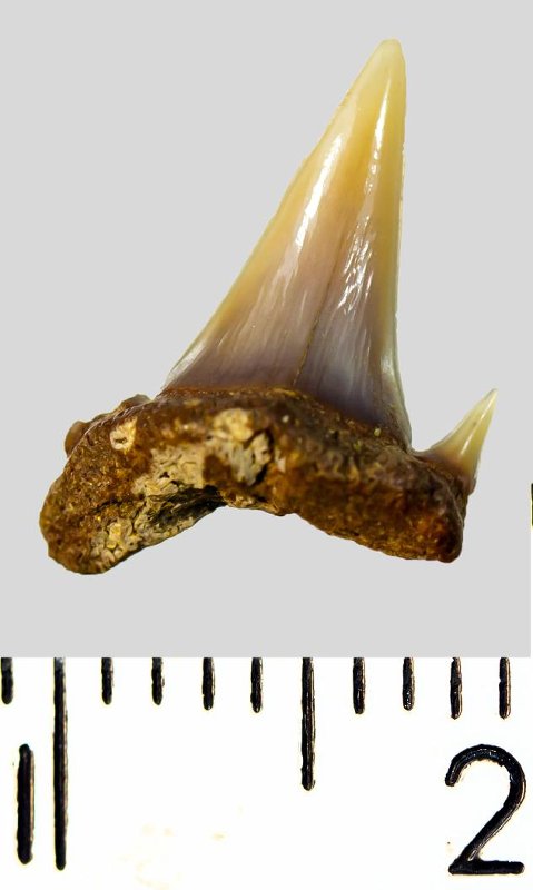Зуб. Акула. Scapanorhynchus subulata Agassiz, 1843. Классификация: Хордовые Chordata, Позвоночные Vertebrata, Хрящевые рыбы Chondrichthyes, Пластиножаберные Elasmobranchii, Акулы Selachii, Ламнообразные Lamniformes, Песчаные акулы Odontaspididae