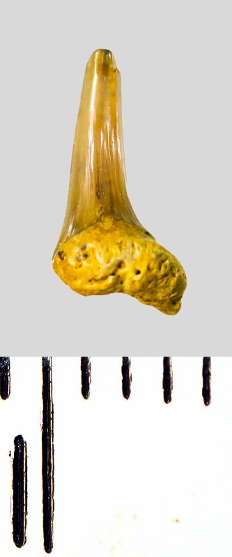Зуб. Акула. Eostriatolamia subulata (Agassiz, 1843). Классификация: Хордовые Chordata, Позвоночные Vertebrata, Хрящевые рыбы Chondrichthyes, Пластиножаберные Elasmobranchii, Акулы Selachii, Ламнообразные Lamniformes, Песчаные акулы Odontaspididae