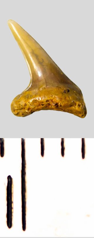 Зуб. Акула. Eostriatolamia subulata (Agassiz, 1843). Классификация: Хордовые Chordata, Позвоночные Vertebrata, Хрящевые рыбы Chondrichthyes, Пластиножаберные Elasmobranchii, Акулы Selachii, Ламнообразные Lamniformes, Песчаные акулы Odontaspididae