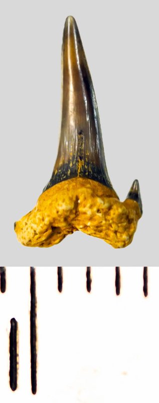 Зуб. Акула. Eostriatolamia subulata (Agassiz, 1843). Классификация: Хордовые Chordata, Позвоночные Vertebrata, Хрящевые рыбы Chondrichthyes, Пластиножаберные Elasmobranchii, Акулы Selachii, Ламнообразные Lamniformes, Песчаные акулы Odontaspididae