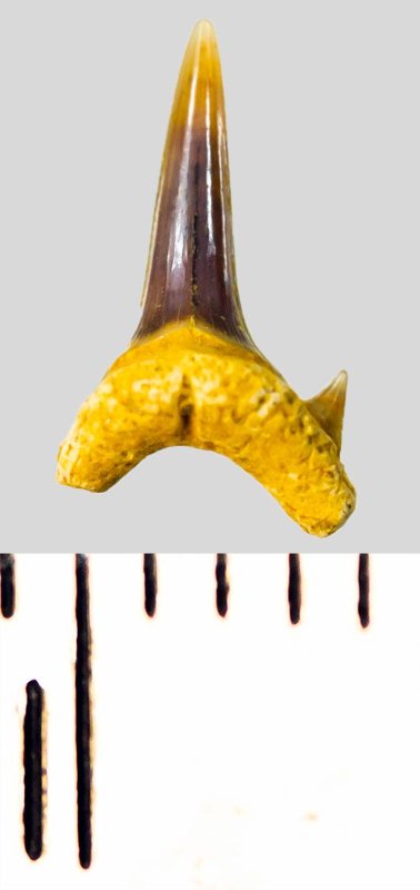 Зуб. Акула. Eostriatolamia subulata (Agassiz, 1843). Классификация: Хордовые Chordata, Позвоночные Vertebrata, Хрящевые рыбы Chondrichthyes, Пластиножаберные Elasmobranchii, Акулы Selachii, Ламнообразные Lamniformes, Песчаные акулы Odontaspididae