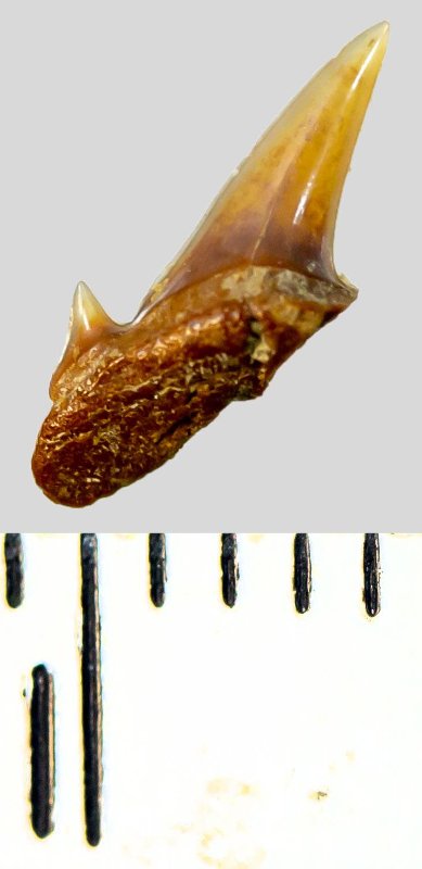 Зуб. Акула. Scapanorhynchus subulata Agassiz, 1843. Классификация: Хордовые Chordata, Позвоночные Vertebrata, Хрящевые рыбы Chondrichthyes, Пластиножаберные Elasmobranchii, Акулы Selachii, Ламнообразные Lamniformes, Песчаные акулы Odontaspididae