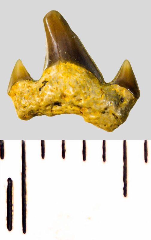 Зуб. Акула. Eostriatolamia subulata (Agassiz, 1843). Классификация: Хордовые Chordata, Позвоночные Vertebrata, Хрящевые рыбы Chondrichthyes, Пластиножаберные Elasmobranchii, Акулы Selachii, Ламнообразные Lamniformes, Песчаные акулы Odontaspididae