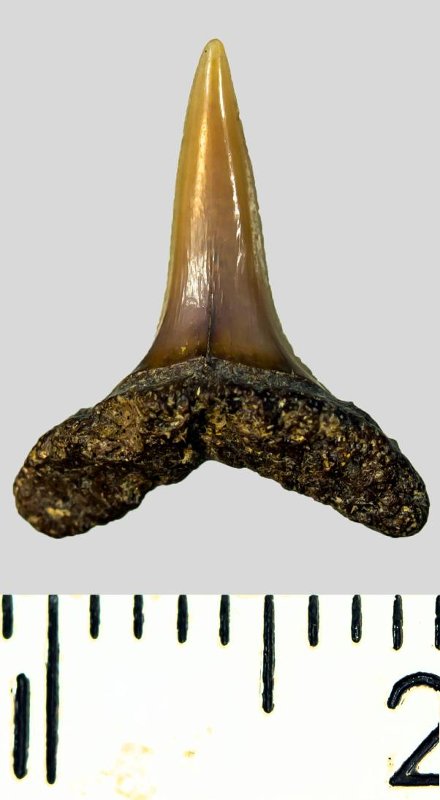 Зуб. Акула. Scapanorhynchus subulata Agassiz, 1843. Классификация: Хордовые Chordata, Позвоночные Vertebrata, Хрящевые рыбы Chondrichthyes, Пластиножаберные Elasmobranchii, Акулы Selachii, Ламнообразные Lamniformes, Песчаные акулы Odontaspididae