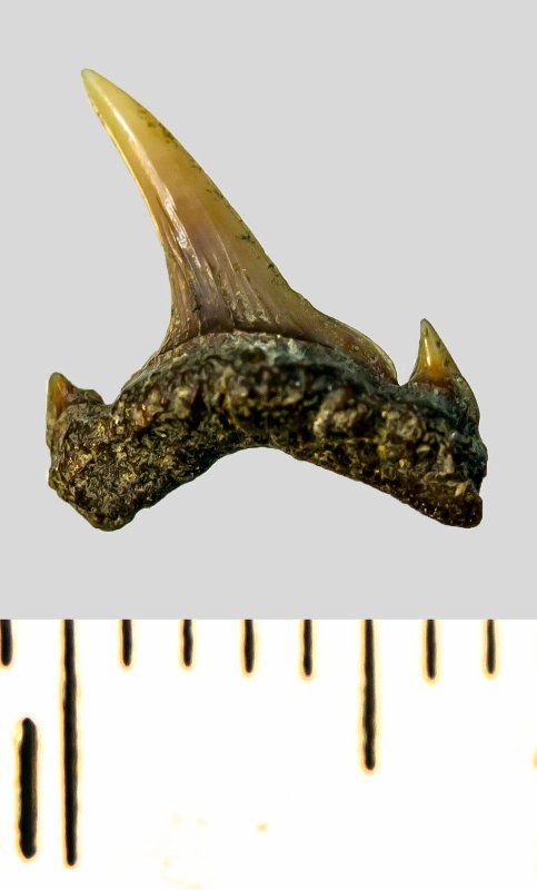Зуб. Акула. Scapanorhynchus subulata Agassiz, 1843. Классификация: Хордовые Chordata, Позвоночные Vertebrata, Хрящевые рыбы Chondrichthyes, Пластиножаберные Elasmobranchii, Акулы Selachii, Ламнообразные Lamniformes, Песчаные акулы Odontaspididae