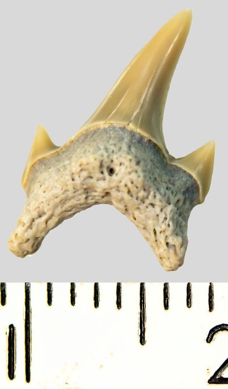 Зуб. Акула. Archaeolamna cf. kopingensis (Davis, 1890). Классификация: Хордовые Chordata, Позвоночные Vertebrata, Хрящевые рыбы Chondrichthyes, Пластиножаберные Elasmobranchii, Акулы Selachii, Ламнообразные Lamniformes, Cretoxyrhinidae
